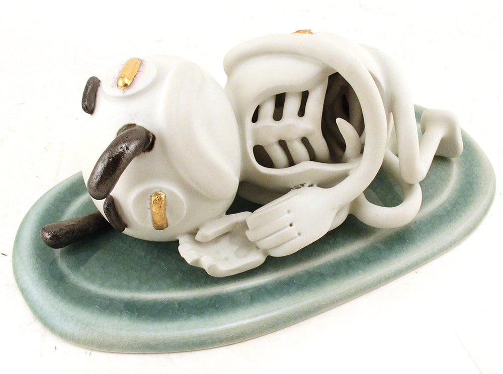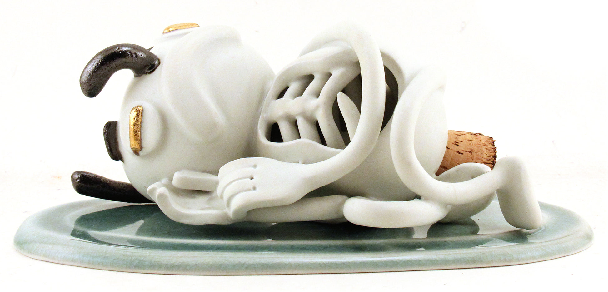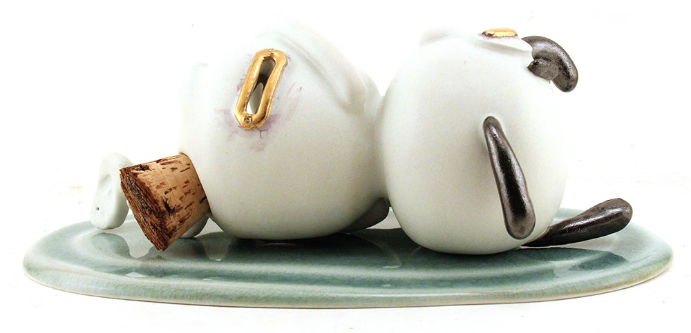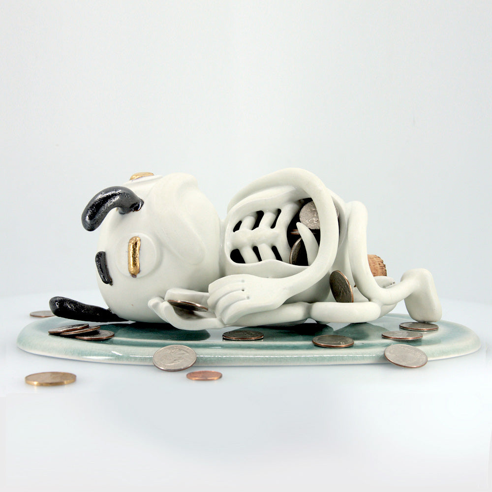 Bank is a play on the conventional piggy bank, complete with a coin slot and cork stopper. However, the belly is exposed, ribs and all, which makes the act of saving a conundrum. What are we saving for, exactly? Bank arose in contemplation with one’s relationship with money and our spending habits - how do we save for an unknown future? How does our relationship with money and the act of saving for the unknown define us?