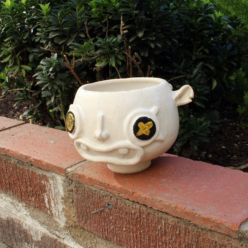 Wotsum was attacked by a possum in the middle of the night, asleep on the shelf as he slowly dried tight. During the scuffle he lost his antlers and the other ear, it was quite the sight. He looked up and said, ”you should've seen the other guy, he ran off in fright!”