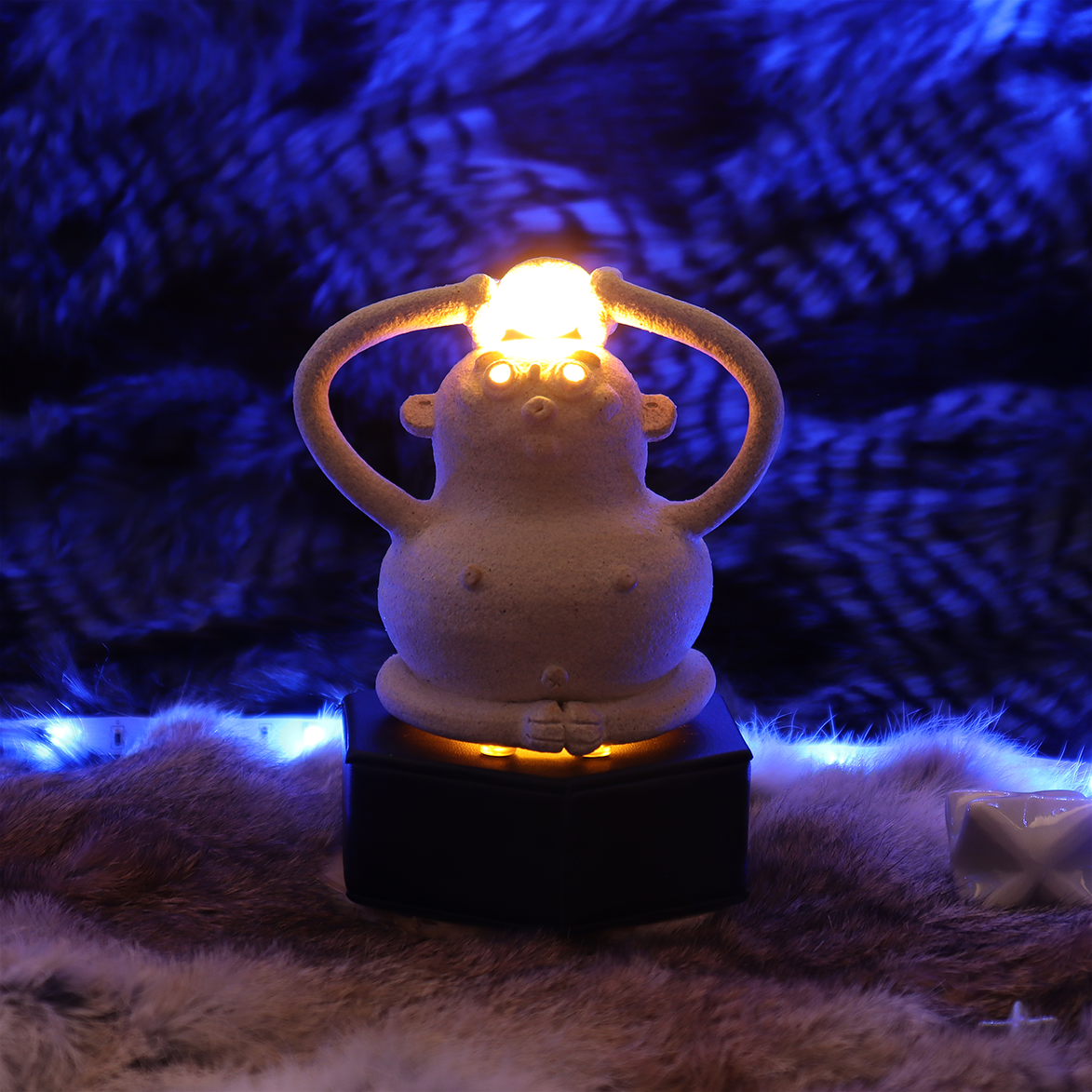 Expansion is made with Sonora White clay, wheel-thrown then hand-sculpted over multiple days using porcelain and then slowly dried. Once dried it is high-fired in a gas kiln and then glazed and fired twice more. Selective details are adorned in precious 22 karat gold and fired for the last time. Electrical wiring is then threaded through the vessel and assembled.