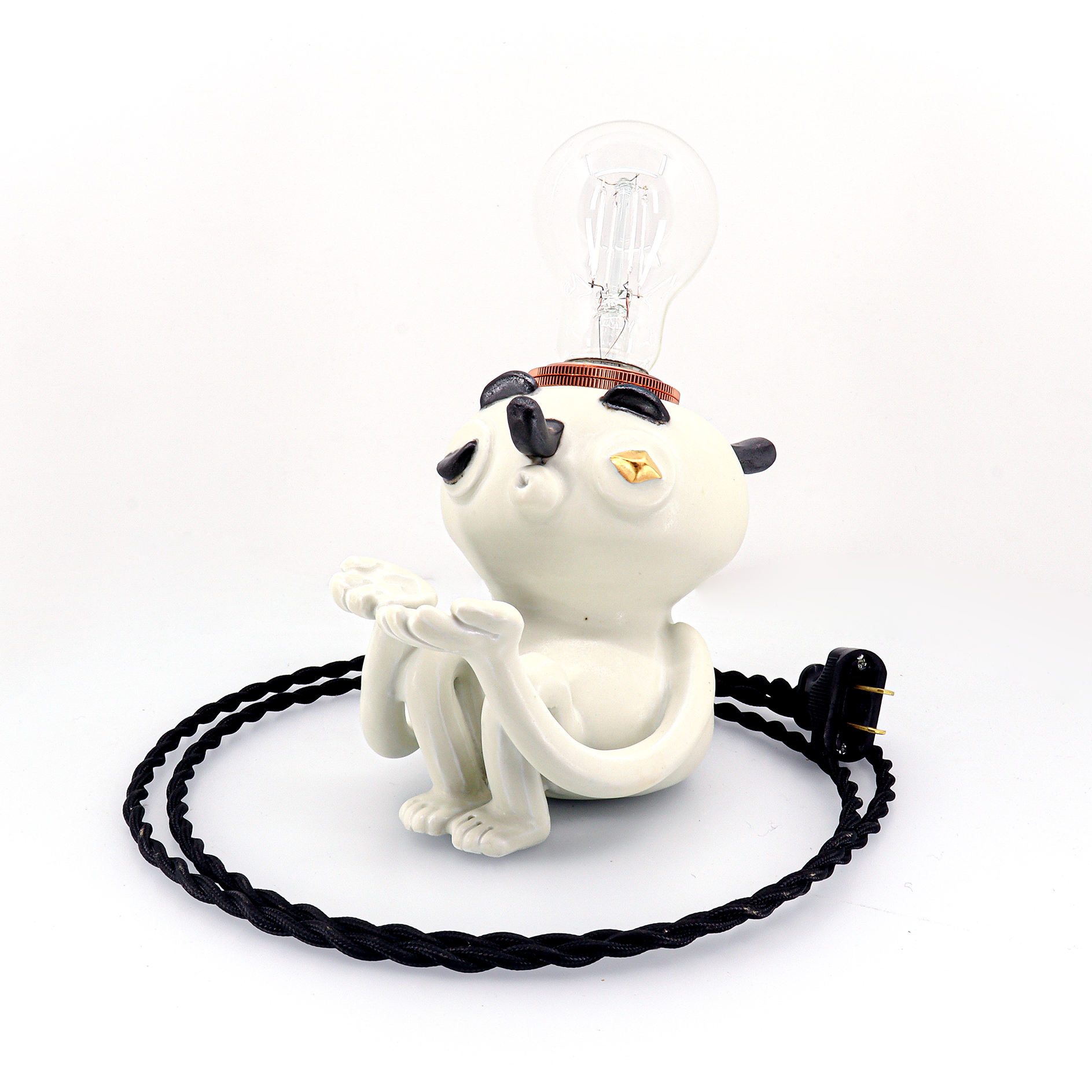 This piece is a lamp with a replaceable lightbulb fixture and electrical cord, with a freestanding base.
