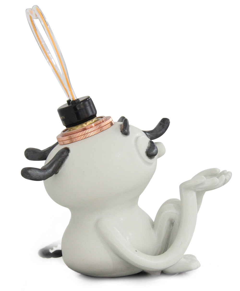 Originally made as a set, the other sadly didn’t make it through the kiln firing, this remaining lonesome one wishes the viewer well in every intersection in life. Gemini features one creature, eyes-closed, hearts in its palms, breathing out - slowly.
