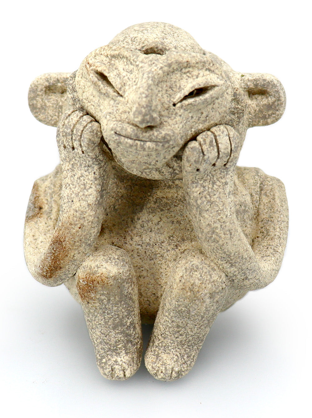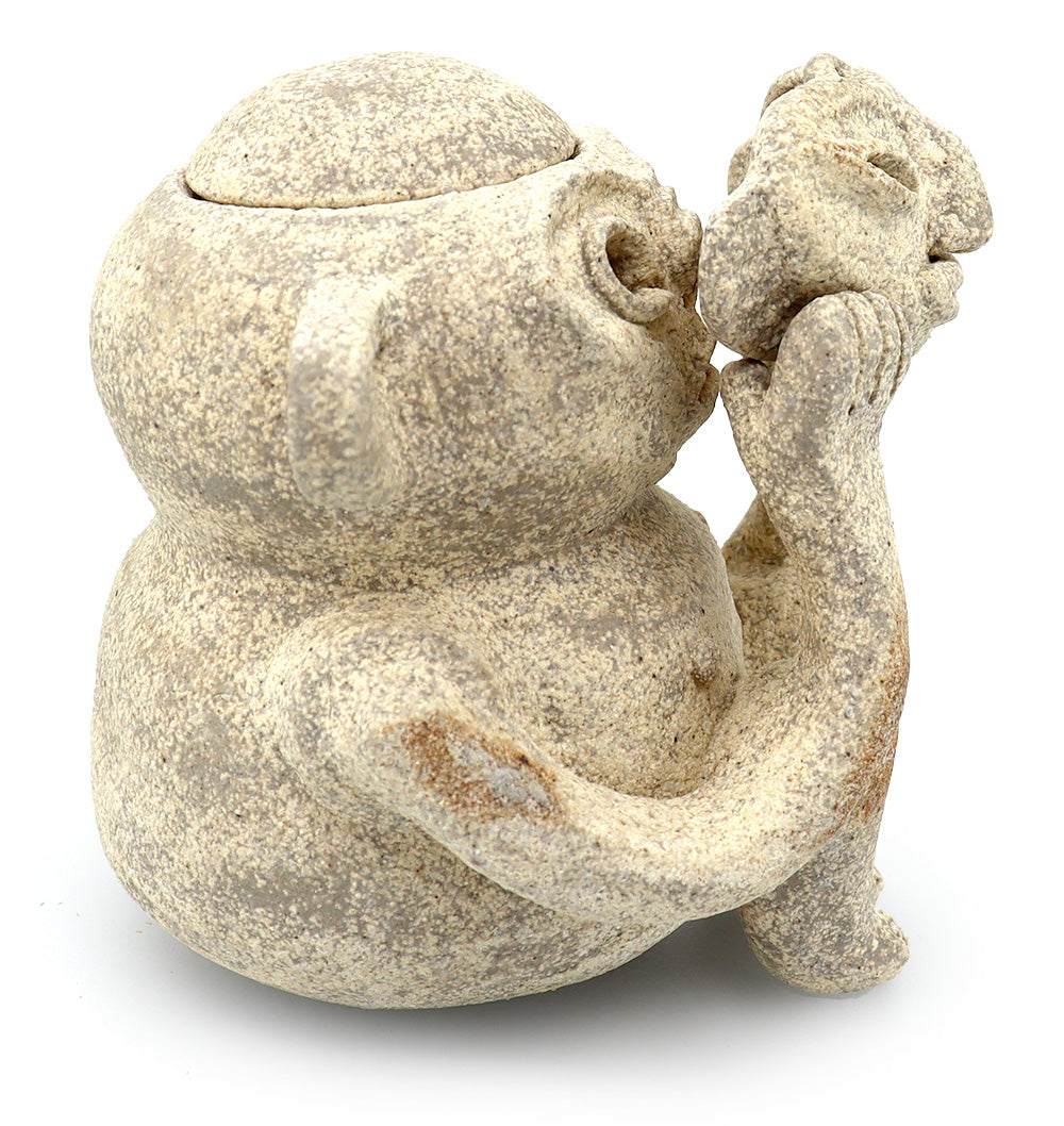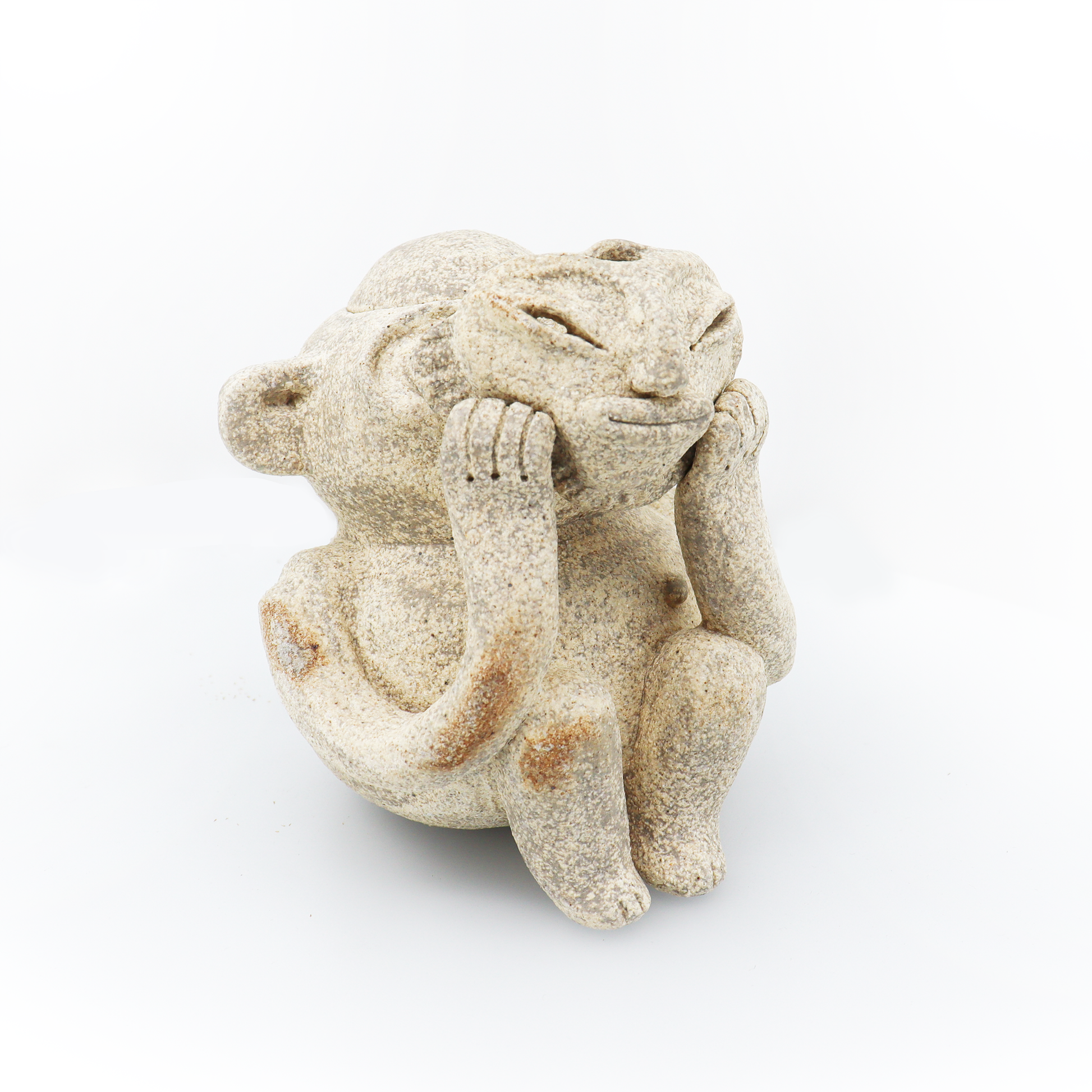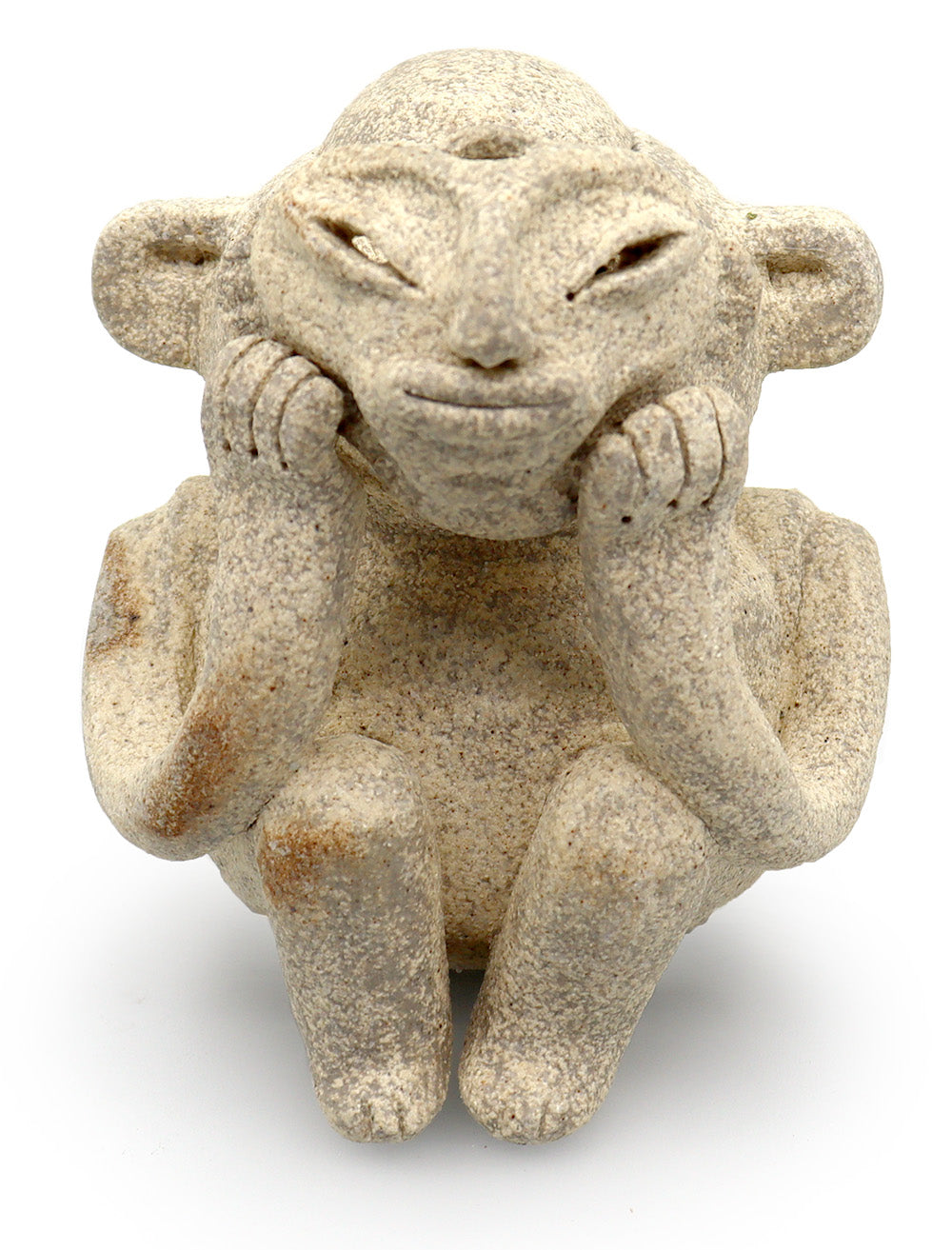 Mask is made from high-fire stoneware. The main vessel pieces are wheel-thrown then sculpted with details on top. Once sculpting is finished, the piece is slowly dried and then fired for the first time. It is then glazed and fired once more for the piece to reach its fully vitrified state. Chosen details are then adorned with precious 22 karat gold and luster fired. If a lamp, electrical is then threaded through and assembled.