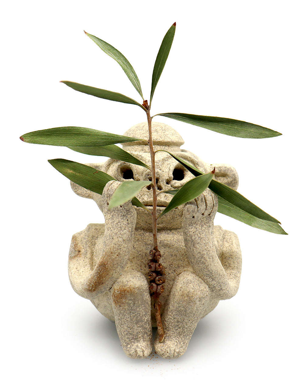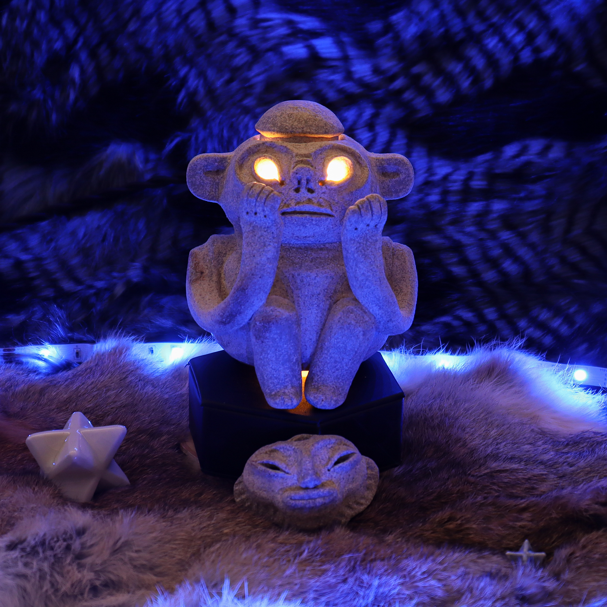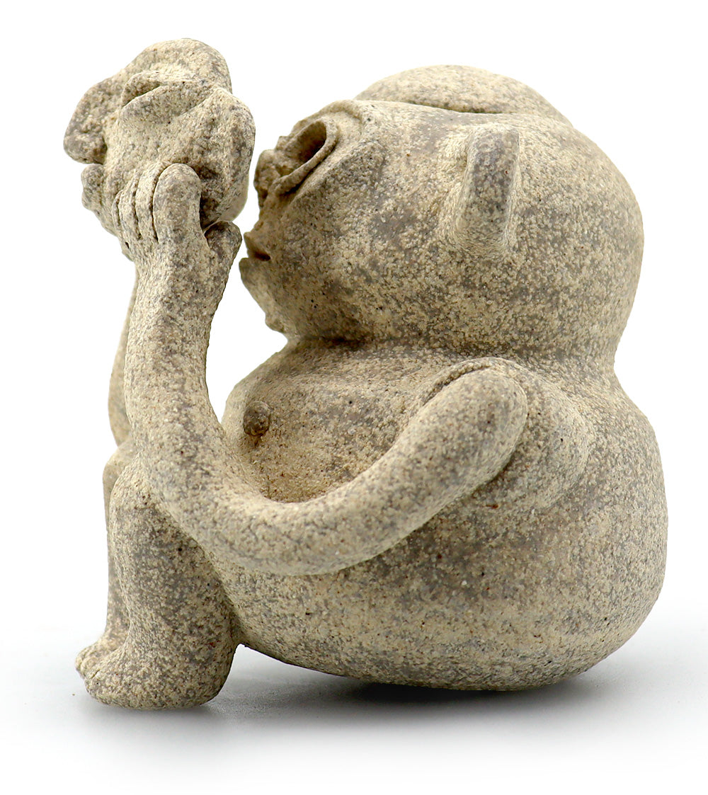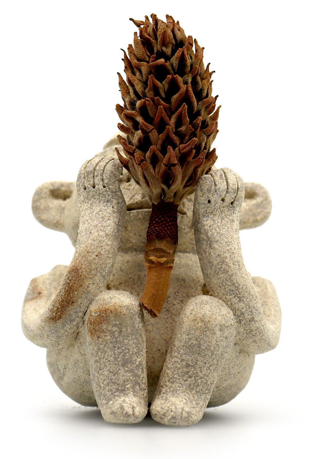 Mask is made from high-fire stoneware. The main vessel pieces are wheel-thrown then sculpted with details on top. Once sculpting is finished, the piece is slowly dried and then fired for the first time. It is then glazed and fired once more for the piece to reach its fully vitrified state. Chosen details are then adorned with precious 22 karat gold and luster fired. If a lamp, electrical is then threaded through and assembled.