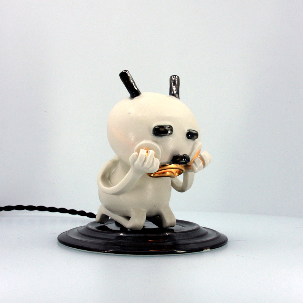 | Medium: | Porcelain, gold luster, incandescent night light bulb |