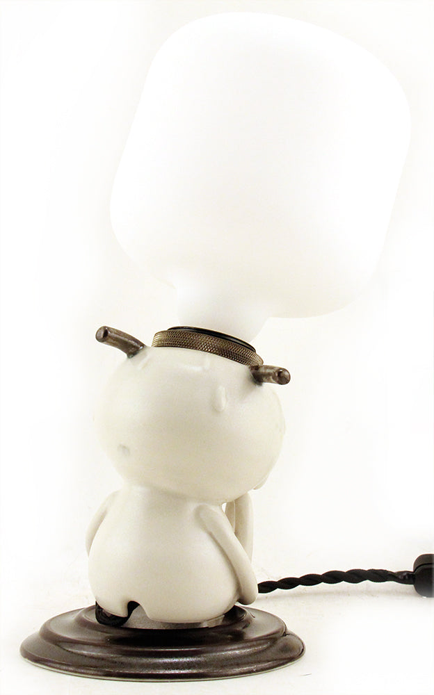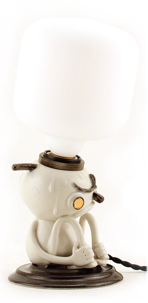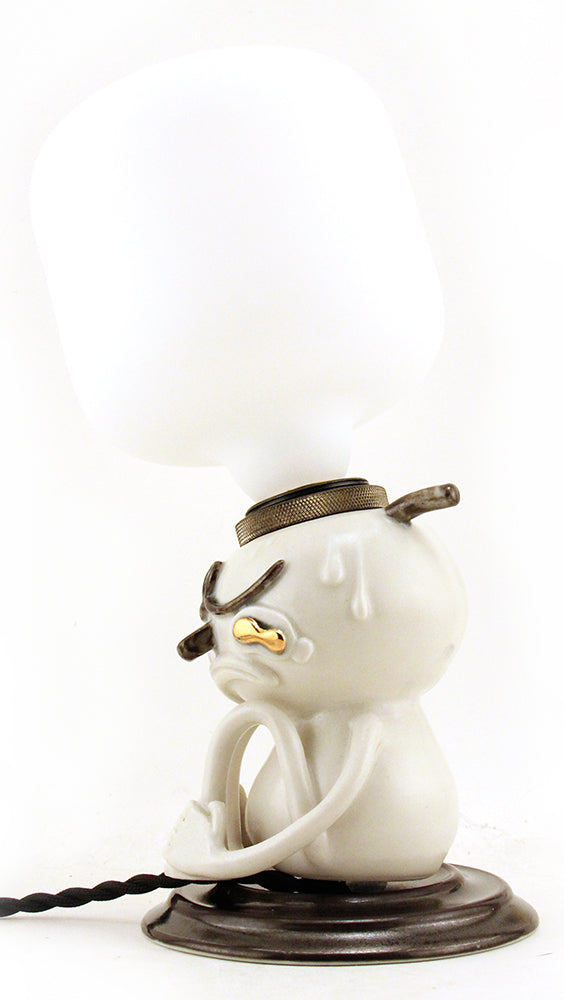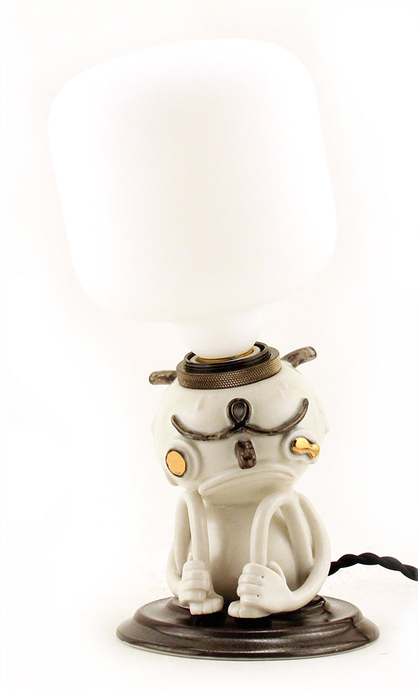 Weight is wheel-thrown with Babu porcelain, then hand-sculpted over multiple days and then slowly dried. Once dried it is high-fired in a gas kiln and then glazed and fired twice more. Selective details are adorned in precious 22 karat gold and outfitted with a Tala LED bulb.